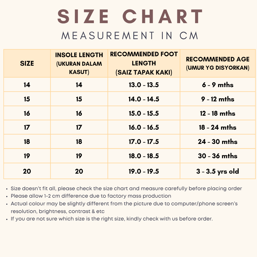 Boot agak besar sedikit utk anak saya usia 1 tahun 3 bulan.. but still boleh pakai..elok jek dia jalan with the rainboot. Btw tq seller walaupun tak reply dm tp pengeposan laju lah jgk..