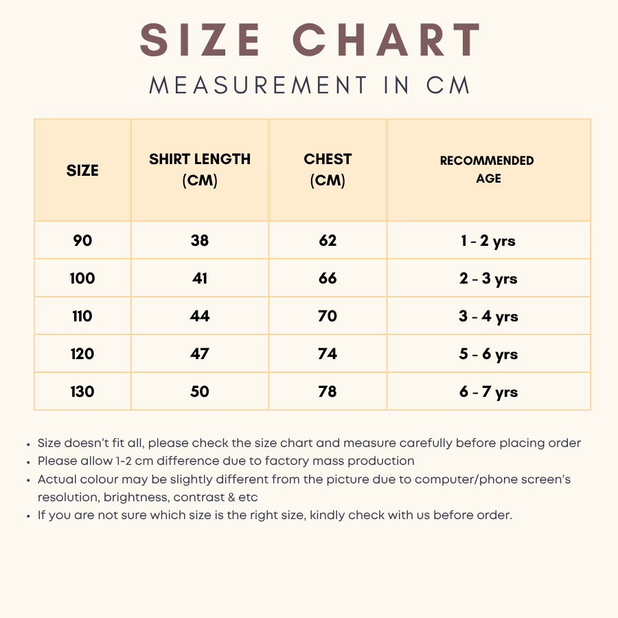 Baju T lengan panjang ini sesuai untuk kanak-kanak perempuan umur 1 hingga 7 tahun. Sesuai dipakai setiap hari – sama ada untuk duduk rumah, berjalan, atau pakai ke taska.