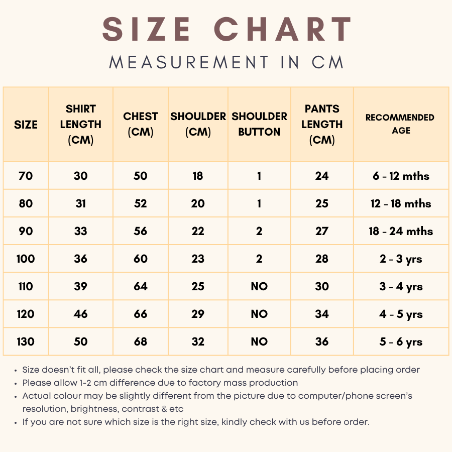 Baju comel ! anak saya umur sebulan lebih muat pakai baju yg size 6-12 month.. baju jarang sikit padan la dgn harga & sesuai la untuk cuaca panas ni..
