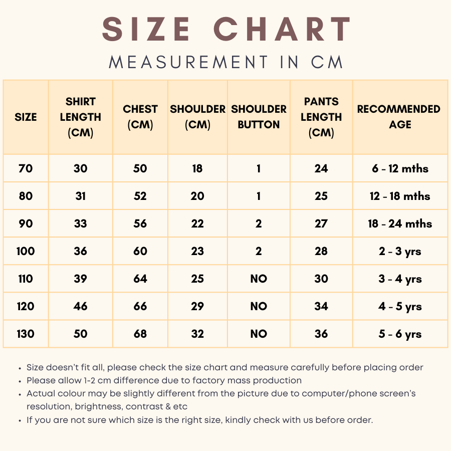 Set pakaian budak lelaki ini lengkap dengan baju & seluar lembut — sesuai untuk bayi & kanak-kanak umur 6 bulan hingga 6 tahun. Senang dipakai, senang dipadankan — memang sesuai untuk si kecil yang aktif!