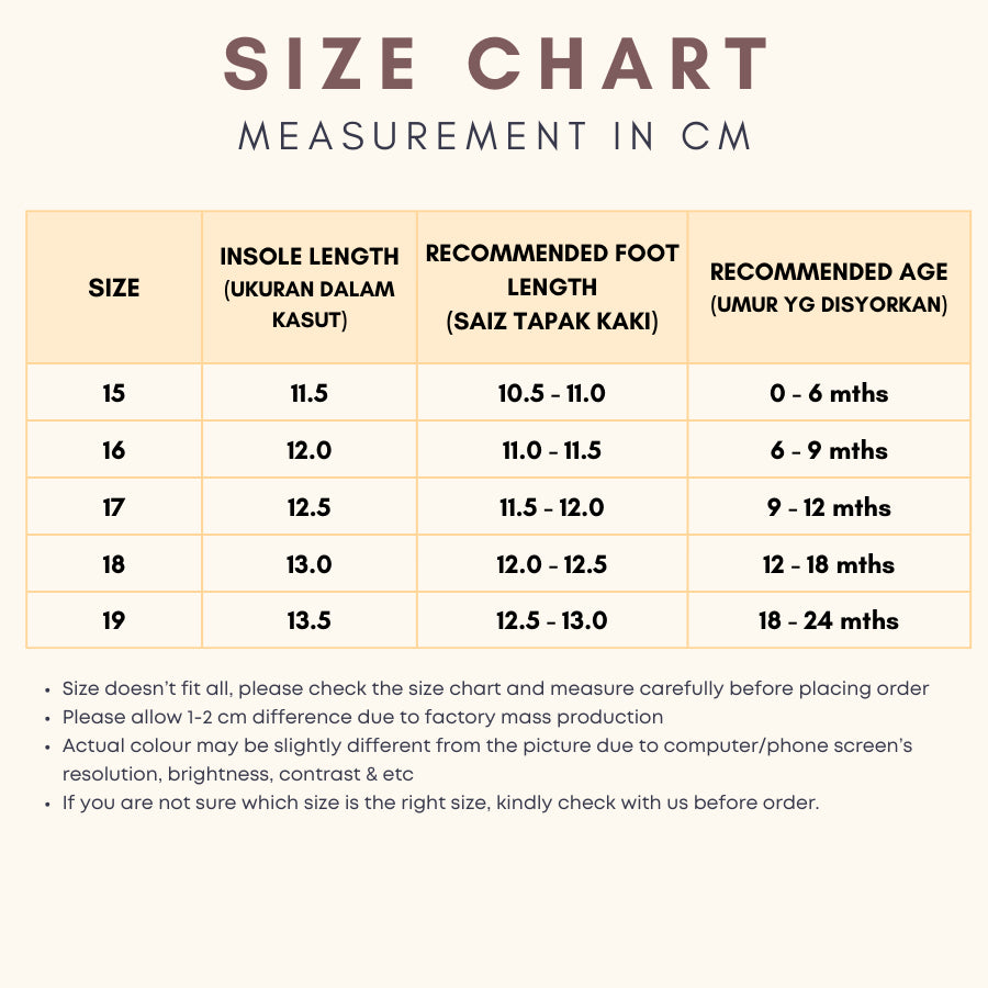 Kasut sandal ini direka khas untuk bayi perempuan umur 0 hingga 2 tahun. Lembut & ringan dengan tapak anti-slip — ditambah riben bunga comel yang buat anak makin menyerlah!