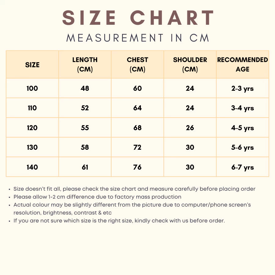 Gaun satu helaian ini direka khas untuk kanak-kanak perempuan umur 2 hingga 7 tahun. Material kapas yang lembut dan ringan — sesuai dipakai setiap hari atau bila-bila masa si kecil mahu bergaya.