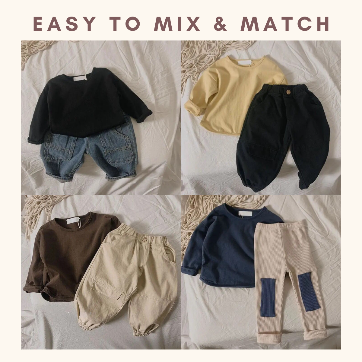 T-shirt lengan panjang uniseks ni memang wajib ada untuk anak aktif. Kain cotton lembut, tak panas dan selesa dipakai seharian. Nak keluar berjalan atau duduk rumah pun sesuai sangat!