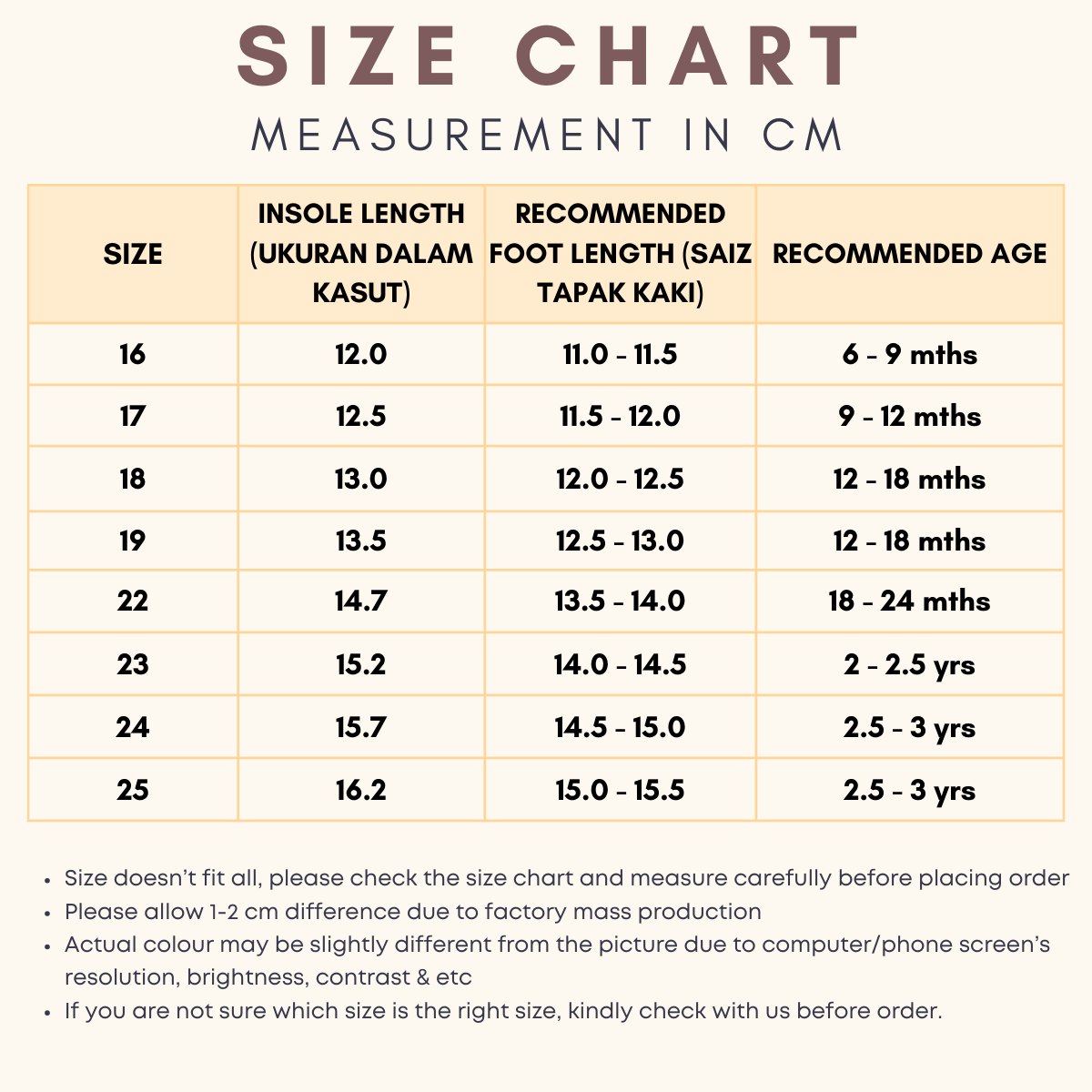 Cute sgt kasut ni. Ank sy happy sgt sy beli kan dia kasut ni. Tgh2 ada teddy bear berkilat. Tapak rubber tak akan licin. Dlm tapak tu lembut. Ank umur 3thun ukuran kaki 15 cm size 25 just nice. Ada longgar sikit tapi just nice bila pakai stocking. Tapak kasut warna brown sy suka sbb tak ketara kotoran nanti. Sy puas hati dgn pembelian sy kali ni. Thanks seller and jnt
